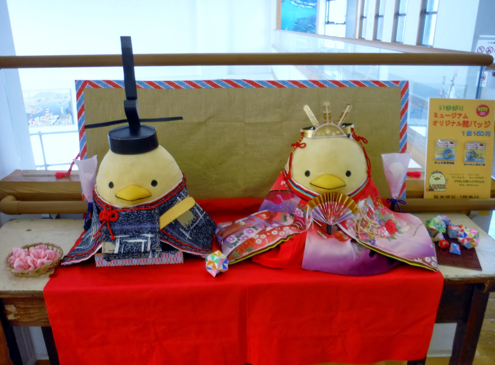 1階の受付はもちろんのこと、2階の展示室入口にも歴代の「ひな人形バリィさん」が飾られています。